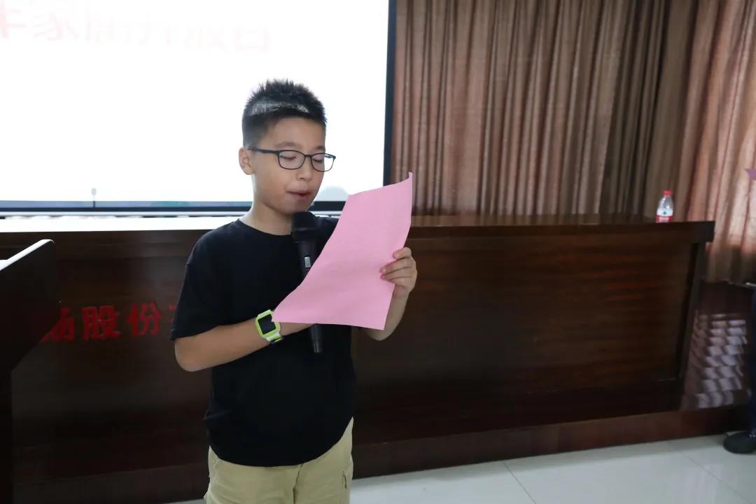 “爸爸妈妈在388vip太阳集团官网工作,我们家有了房子,有了车子,吃穿不愁,生活越来越幸福。感谢爸爸妈妈为我的付出,感谢388vip太阳集团官网让我们家的生活越来越好!”子女代表董郑宇上台发言,表达了对父母辛苦工作的感谢,以及对388vip太阳集团官网的美好祝愿!