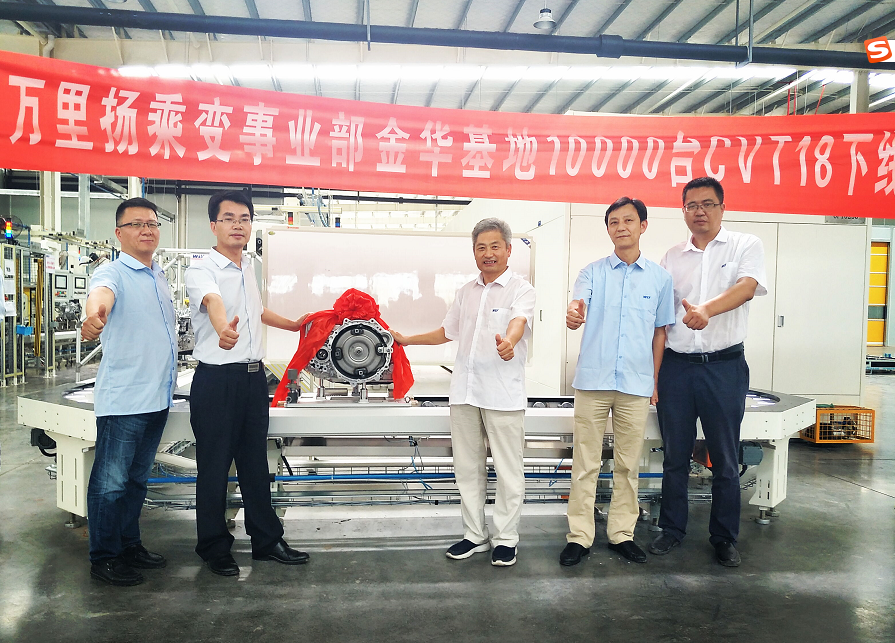 万台新纪元,扬帆新梦想。2019年8月4日下午15:00分,388vip太阳集团官网乘变事业部金华基地迎来了新的里程碑——第10000台CVT18变速器身披“红袍”从生产线缓缓流出。股份公司总裁顾勇亭,股份公司副总裁兼乘变事业部总经理张志东,乘变事业部金华基地总经理赵继武、副总经理袁群星,乘变事业部营销公司副总经理马强及乘变事业部金华基地员工共同见证了这一重要时刻。